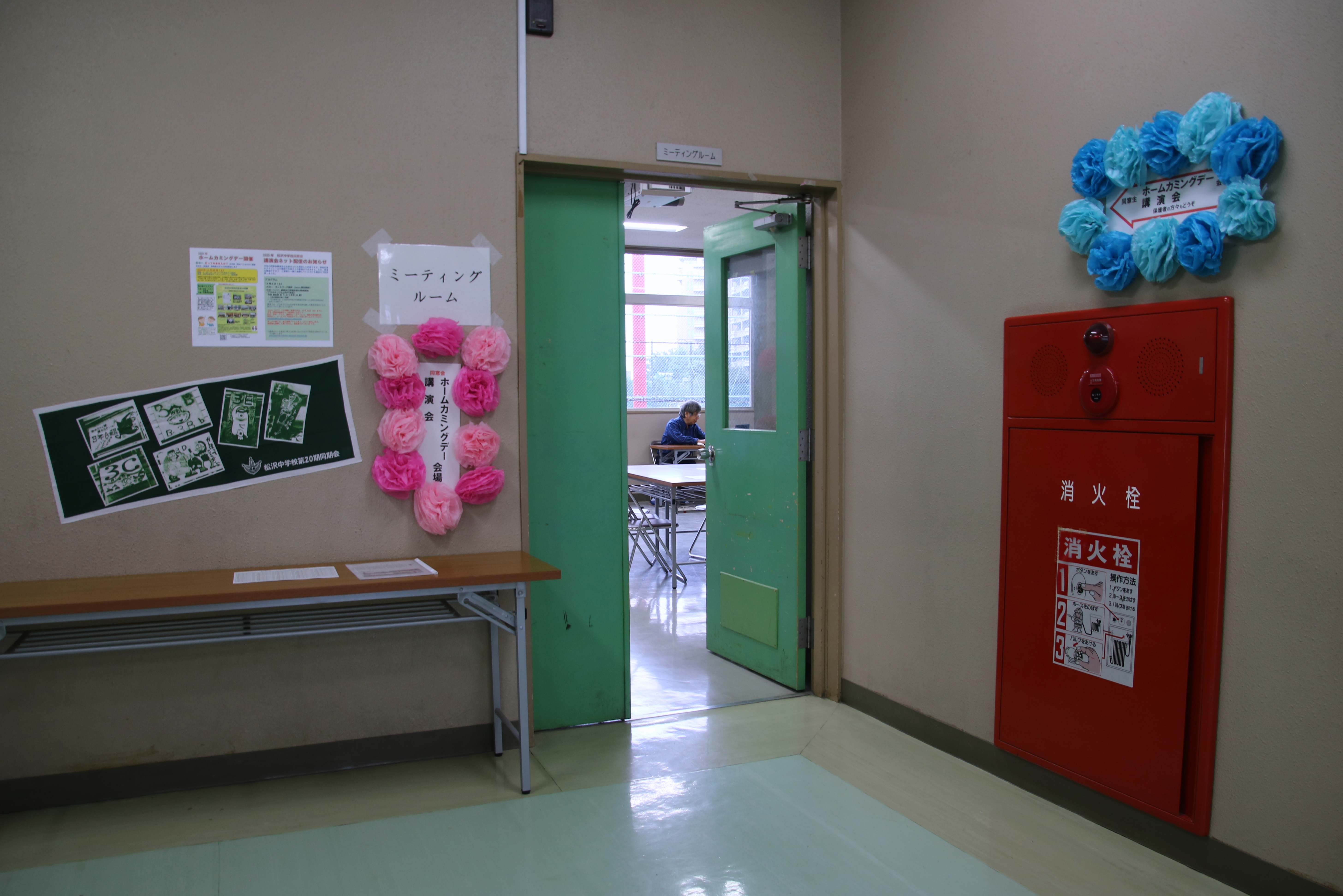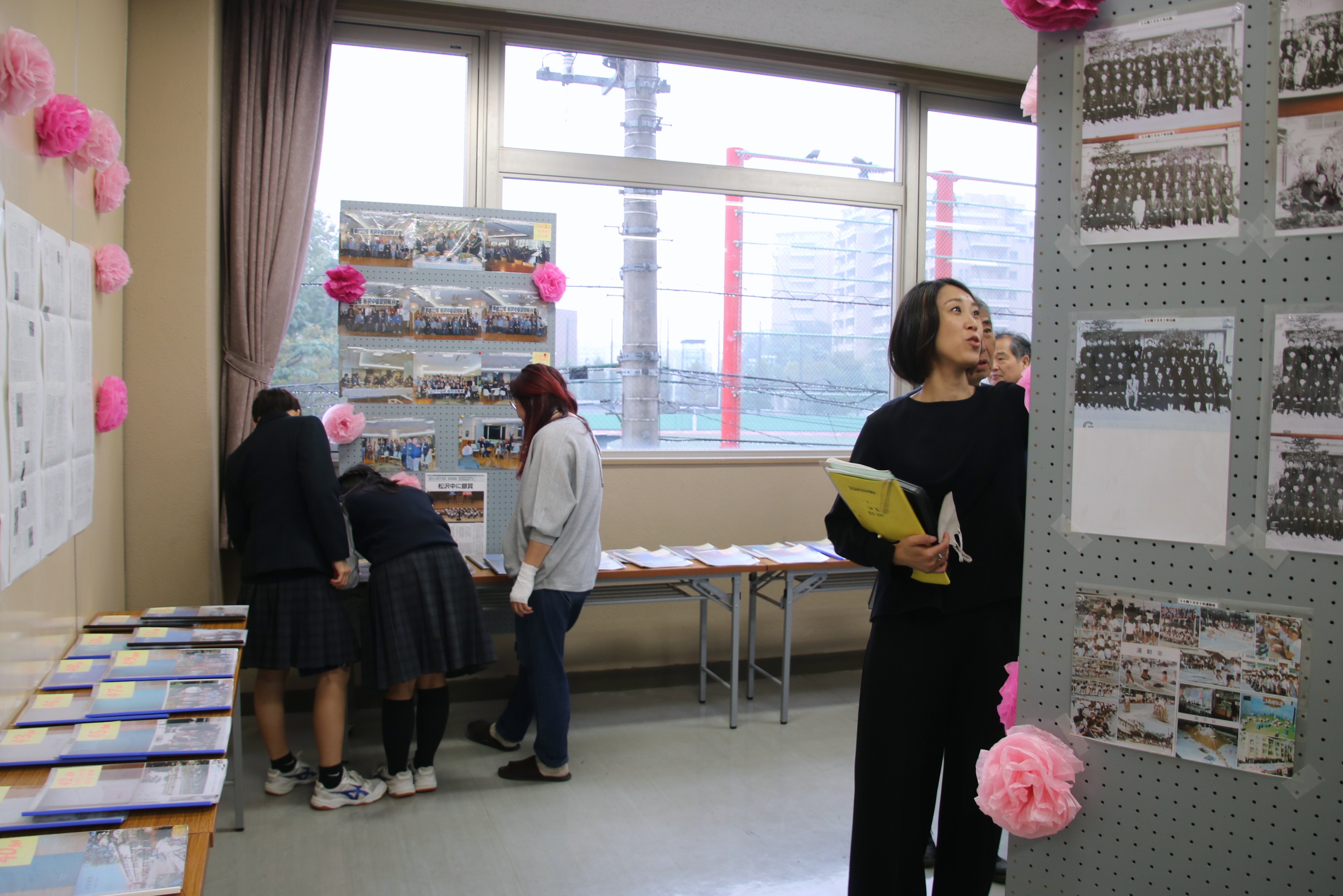今年度は、10月20日(土)の「松中祭」に合わせて、当日の13時~15時30分に「ホームカミングデー」を設定し、湯茶とお菓子を準備した「同窓会懇談室」(ミーティングルーム内)を設け、同窓生が自由に出入りし休憩出来る場所としました。