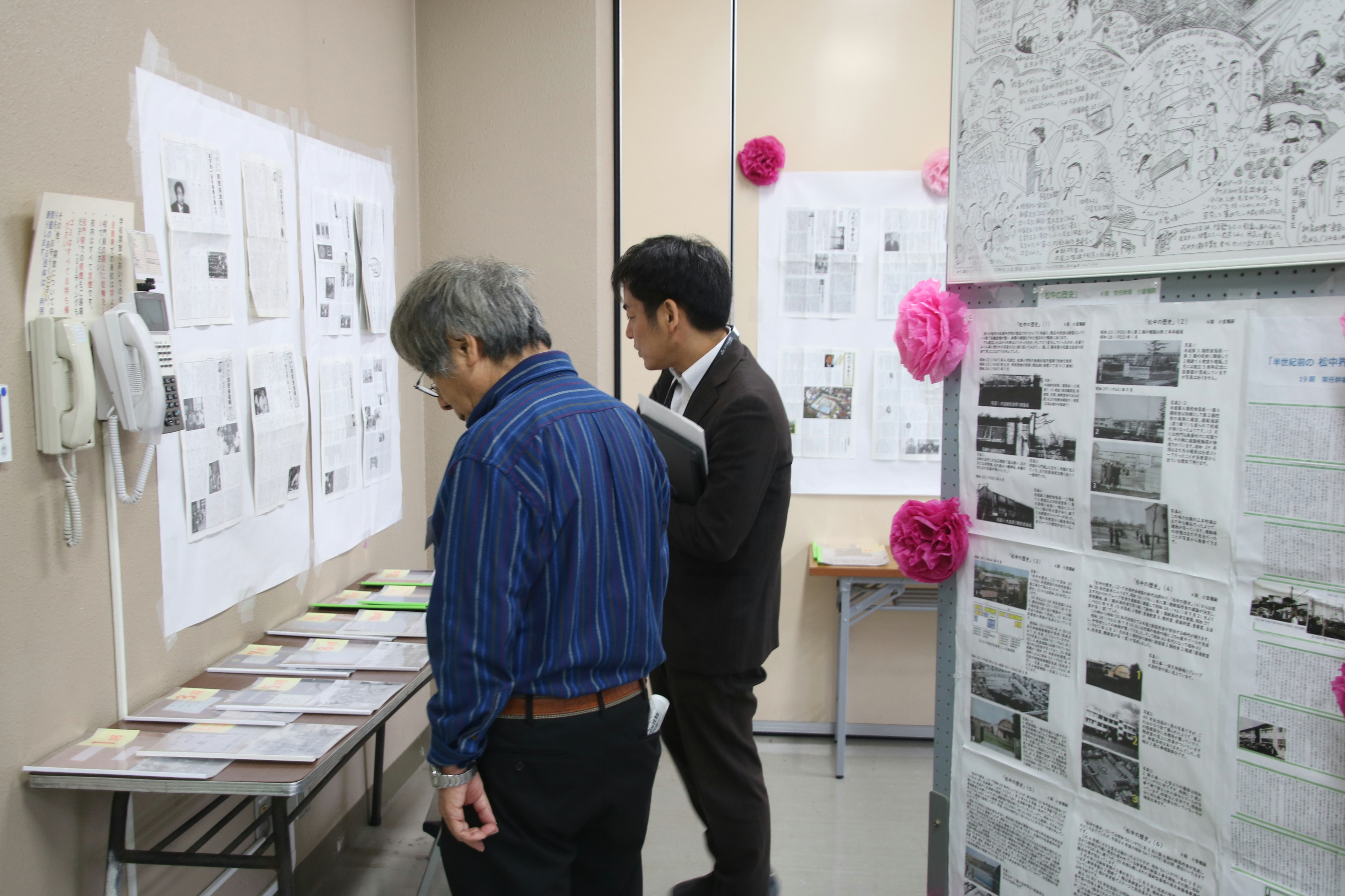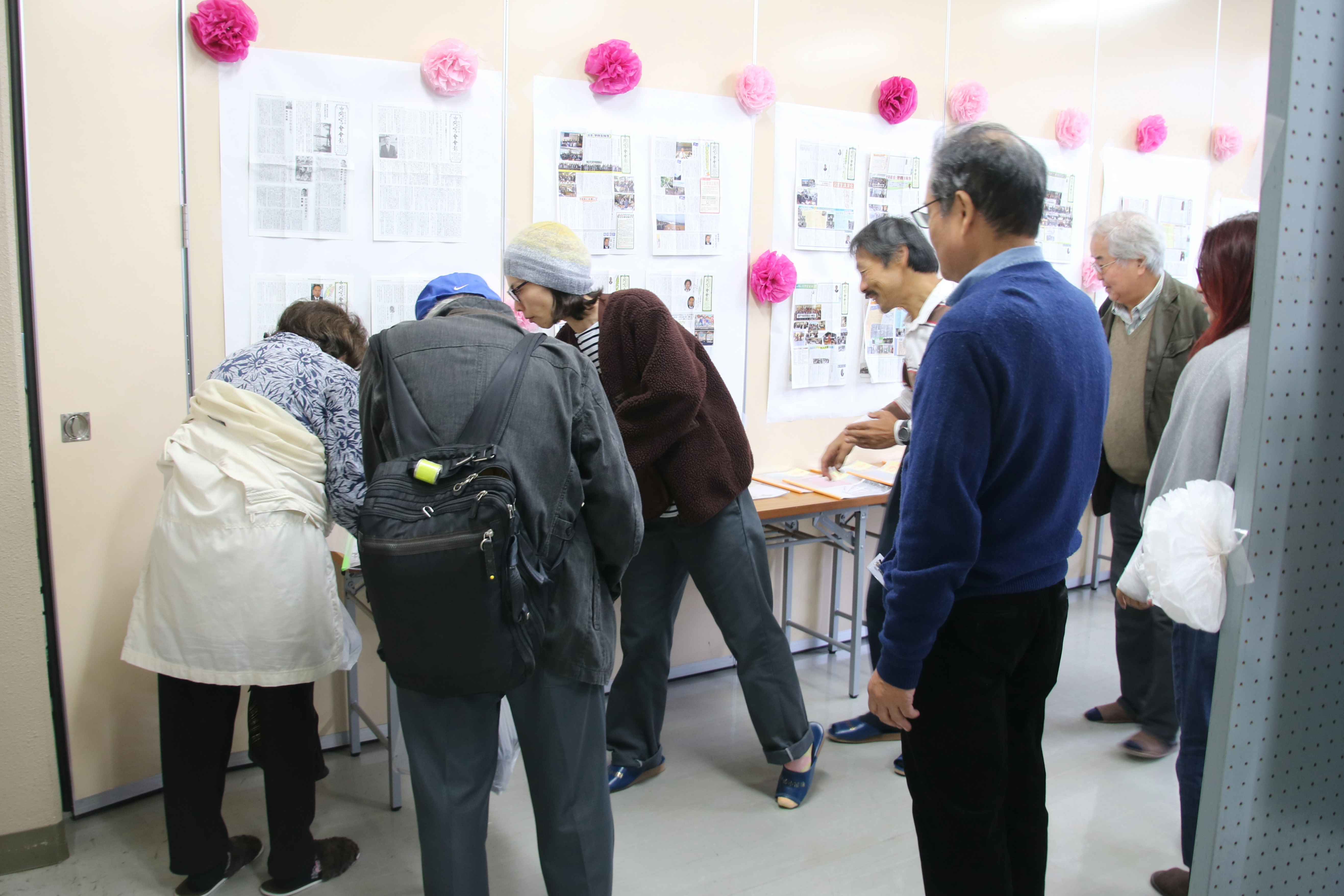 前日から、ボードを1階から運び、過去の写真や会報紙などと、ペーパーフラワなどを準備して開催にこぎつけました。